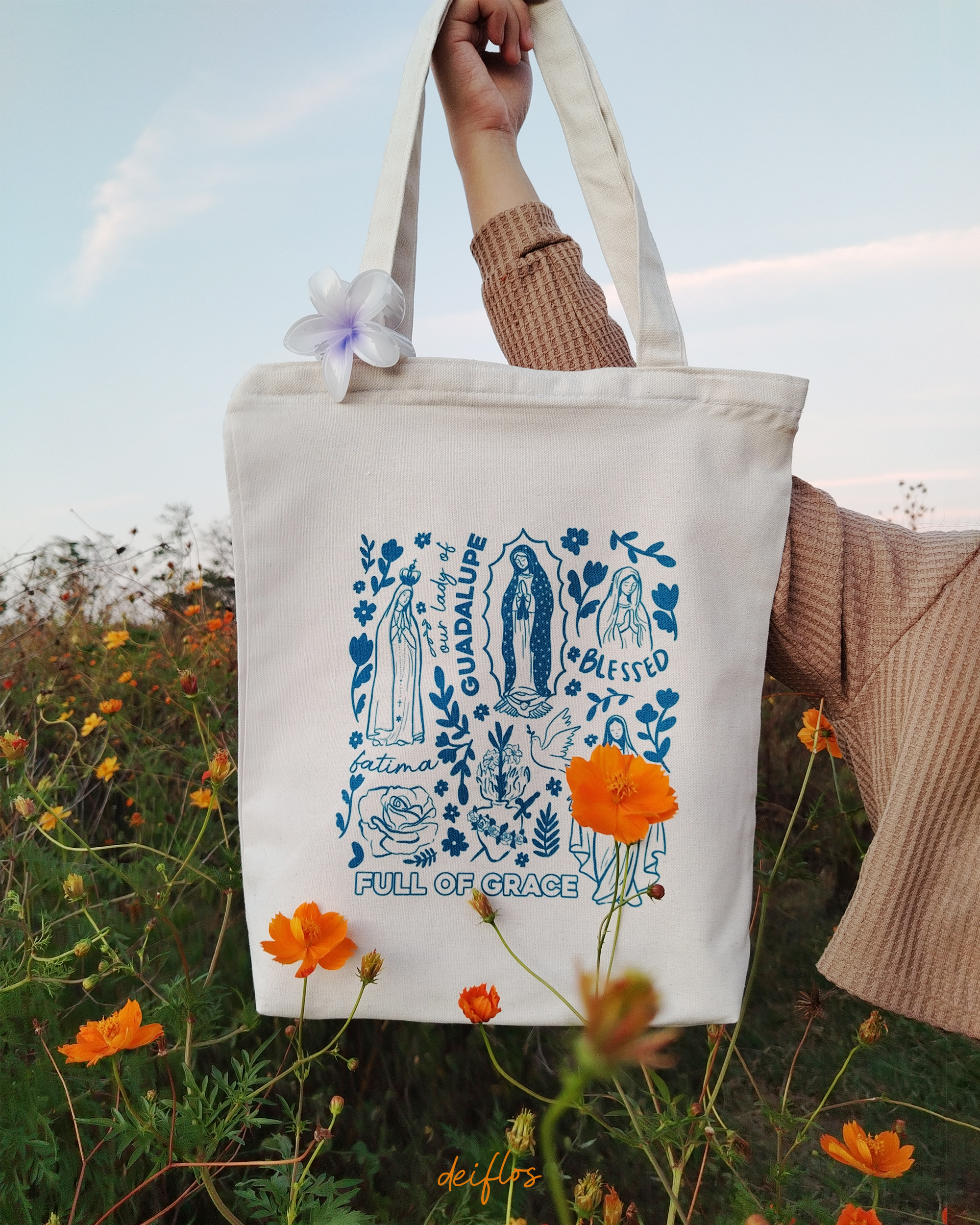 This Blessed Virgin tote bag features an original artwork created as part of our wedding journey. Inspired by Mary’s quiet strength, tenderness, and yes, this piece is a small reminder to carry grace wherever you go.